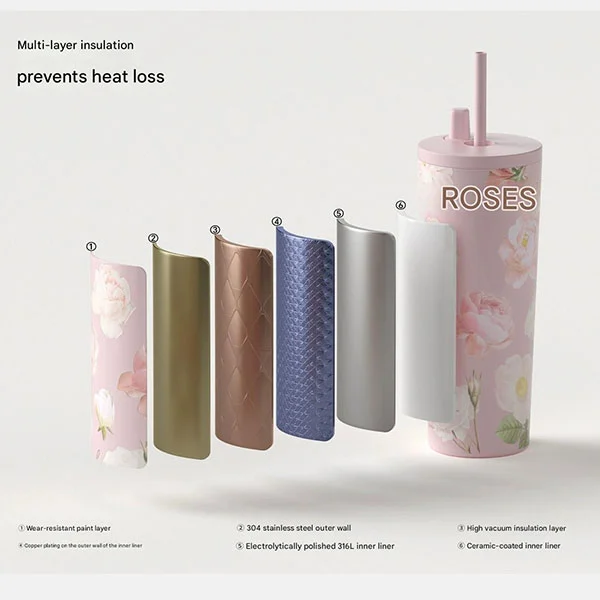 Tänä kesänä nauti tyylikkäästi jääkahvistasi Kudiken kylmäsäilytetyllä kahvikupilla! Se on valmistettu kestävästä kevyestä elintarvikelaatuisesta ruostumattomasta teräksestä, ja se on varustettu vuotamattomilla kuppien kannet ja kahvipillit, joiden avulla voit nauttia jääkahvin tai kylmäkeittokahvin virkistävästä mausta milloin tahansa ja missä tahansa. Tämä innovatiivisesti suunniteltu kahvikuppi on hienosti muotoiltu ja siinä on tyttömäinen värimaailma, mikä tekee siitä kätevän ja käytännöllisen, joten voit nauttia jäähdytetystä suosikkijuomasi milloin tahansa ja missä tahansa.