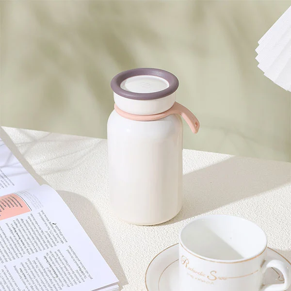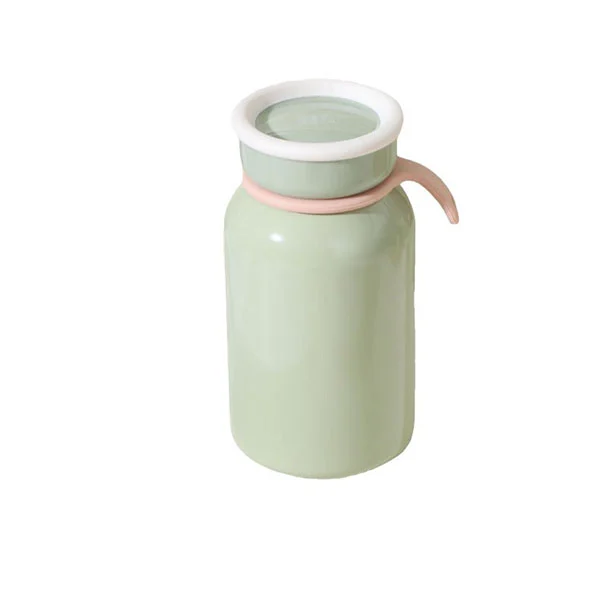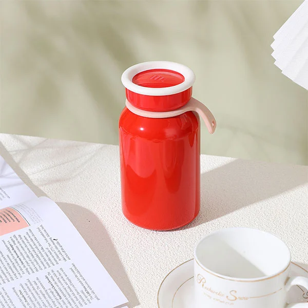 Ruostumattomasta teräksestä valmistetun maitopullon pinta on suihkumaalaus, leivinlakka yli 140 asteessa varmistavat mukavan käden tunteen ja varmista, että pinta on likaresistentti.