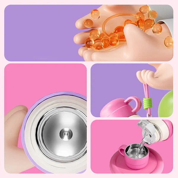 Se on tyhjiöeristetty, se voi pitää lämpimänä yli 18 tuntia, se sopii ulkopuolelle matkustamiseen, voi nauttia kuumasta vedestä maitojauhelle. Pidä kylmempi yli 24 tuntia, nauti mehusta ja vedestä kuumana kesällä.