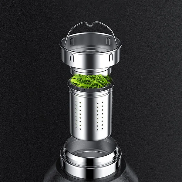 Tämä on tyhjiöeristetty matkankeitin, joka on valmistettu 316 ruostumattomasta teräksestä ja 201 ruostumattomasta teräksestä. Sisävuori on valmistettu korkealaatuisesta 316 ruostumattomasta teräksestä, joka on puhdas ja ympäristöystävällinen ja vähemmän todennäköisesti säilyttää bakteerit.