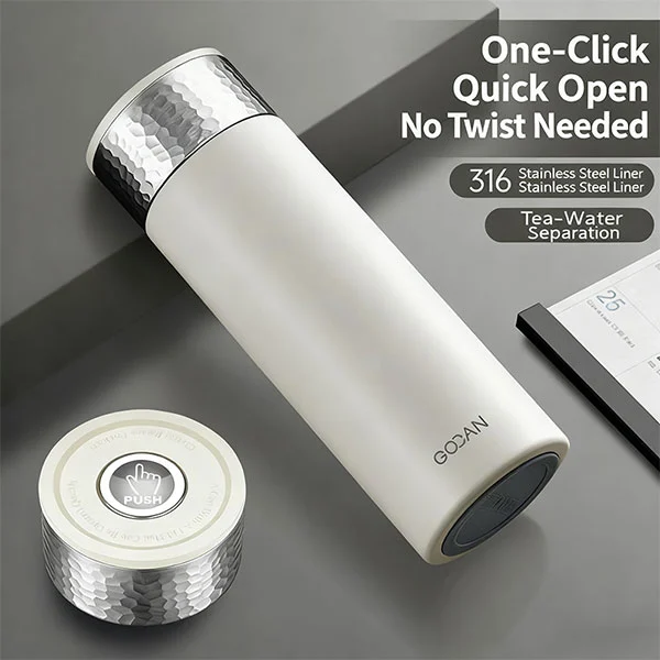 Se on kaksiseinämäinen ja tyhjiöeristetty, sisäosa on 316 ruostumatonta terästä, sillä on parempi antibakteerinen vaikutus ja vähemmän elementtien vapautumista. Ulkoseinä on 304 ruostumatonta terästä, joka on perinteistä elintarvikelaatuista materiaalia.