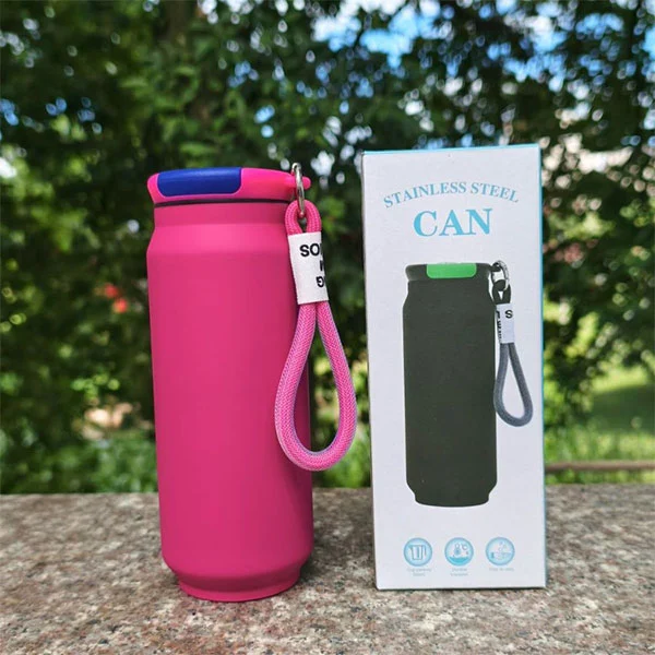 Tämä on ruostumattomasta teräksestä valmistettu eristetty pop -pullo tölkin muodossa. Kannen suunnittelu on erittäin mielenkiintoinen. Se jäljittelee tiiviisti tölkin suunnittelua. Jos rakastat purkitettuja juomia, sinulla pitäisi ehdottomasti olla tämä. Koska siinä ei ole vain tölkin klassista ulkonäköä, vaan siinä on myös paljon enemmän toimintoja, jotka ovat tölkin toimintoja.
