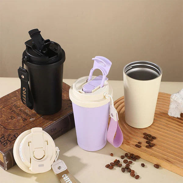 Tällä 360 ml: n ruostumattomasta teräksestä valmistetulla eristetyllä kahvipullolla on erittäin kätevä kansi, tämä kansi ei vain vapauta kätesi, vaan myös antaa sinun juoda vettä monin tavoin. Yksi tapa on avata kartta ja juoda suoraan, ja toinen tapa on avoin olki, juo oljen kanssa. Molempiin suuntaan voi toimia yhdellä kädellä. Ajoitko, työskentelet tai käytät puhelinta Tiktokin katselemiseen, voit kaikki juoda vettä samanaikaisesti.