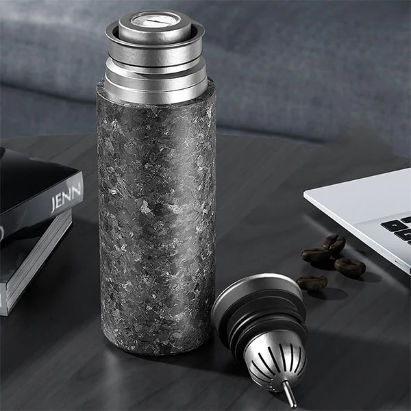 Tämä on titaanivesipullo, jossa on magneettinen kansi, joka on valmistettu titaanista, ilmailumateriaalista, jonka kapasiteetti on 410 ml. Siinä on tavallisen lämpökupin ydinfunktiot: tyhjiölämmön säilyttäminen ja kylmän säilyttäminen. Kylmän säilyttäminen voi kestää 6 tuntia ja lämmön säilyttäminen voi kestää 4 tuntia.