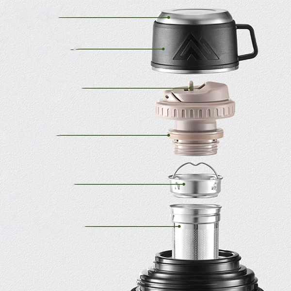 Tämä matkapullo, jossa on erittäin korkea kylmän eristys suorituskyky, on valmistettu kaksikerroksisesta ruostumattomasta teräksestä, sisävuoren ja ulkoreinän kuparilevyillä. Sen tyhjiöaste on 99,8%, mikä vähentää lämmönsiirtoa tehokkaasti ja tarjoaa jatkuvan lämmön ja kylmän eristyksen.